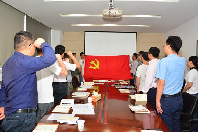 緊接著,開(kāi)展“四重”活動(dòng)?;顒?dòng)前公司行政人事部專門從園區(qū)檔案室調(diào)取每一名黨員入黨志愿書(shū),將內(nèi)容拍好發(fā)到每人,重溫入黨時(shí)的難忘經(jīng)歷。在劉建華書(shū)記的帶領(lǐng)下,右拳高擎,神情莊重,面對(duì)鮮紅的黨旗鄭重宣誓,抒發(fā)對(duì)黨的忠誠(chéng),踐行黨的宗旨,維護(hù)黨的形象和愛(ài)黨愛(ài)國(guó)情懷。