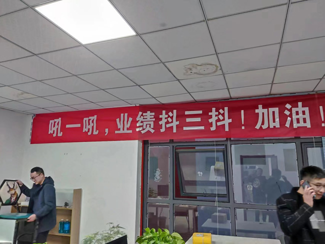 走進(jìn)騰輝家具,一條催人奮進(jìn)的條幅“將來(lái)的你一定會(huì)感激現(xiàn)在拼搏的你”映入眼簾,四通科技的“不吃飯,不睡覺(jué),敲著鍵盤(pán)數(shù)鈔票”條幅簡(jiǎn)單明了催人沖業(yè)績(jī),還有的拉出 “吼一吼,業(yè)績(jī)抖三抖!” 這些熱血沸騰的條幅巧妙打造“備戰(zhàn)”主題,為“雙11”預(yù)售烘托濃厚氛圍。