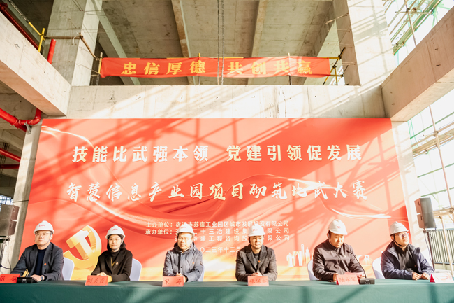 12月6日下午,園區(qū)智慧信息產(chǎn)業(yè)園開展“技能比武強(qiáng)本領(lǐng) 黨建引領(lǐng)促發(fā)展”主題的砌筑比武活動(dòng),園區(qū)機(jī)關(guān)及直屬單位黨委副書記、管委會(huì)辦公室副主任宋海、園區(qū)國資國企黨委副書記、財(cái)政局副局長(zhǎng)張保桐、園區(qū)規(guī)劃建設(shè)局副局長(zhǎng)劉美霞、園區(qū)建設(shè)工程質(zhì)量安全監(jiān)督站副站長(zhǎng)方東、城發(fā)公司管理層及全體黨員、智慧信息產(chǎn)業(yè)園項(xiàng)目參建團(tuán)隊(duì)參加本次活動(dòng),六組參賽隊(duì)伍分工明確,人員緊密配合,經(jīng)過激烈角逐,又快又好完成樣式圖案砌筑,決勝出綜合排名前三的隊(duì)伍,并為獲獎(jiǎng)隊(duì)伍頒發(fā)獎(jiǎng)品。
