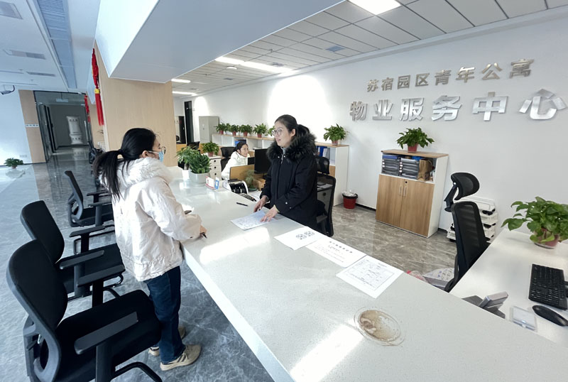青年公寓作為園區(qū)高品質(zhì)公寓,主要為園區(qū)企業(yè)人才配套,一經(jīng)推出便受到企業(yè)一致好評。當(dāng)天上午,簽約現(xiàn)場一片火熱景象。在工作人員的引導(dǎo)下,意向住客詳細(xì)了解公寓的房間設(shè)施、周邊配套等情況,并簽定租賃合同,辦理交房相關(guān)手續(xù)。