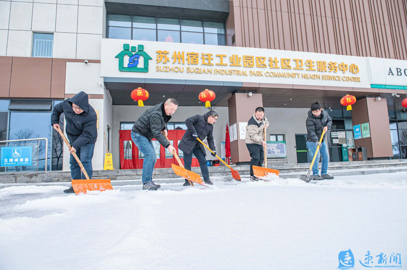 2月21日,蘇宿工業(yè)園區(qū)遇雨雪冰凍天氣,環(huán)衛(wèi)、城管、城發(fā)公司等單位與黨員志愿者、群眾齊力奮戰(zhàn)鏟雪除冰,保障市民出行安全。