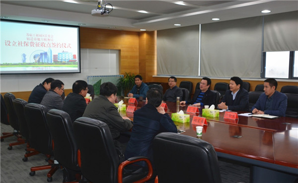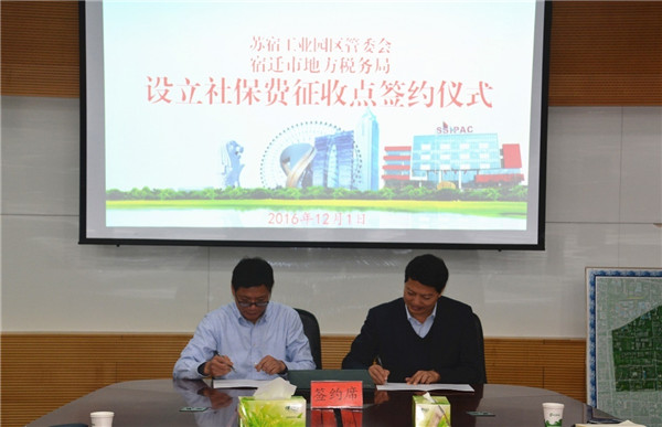 12月1日下午,園區(qū)管委會(huì)與宿遷市地稅局舉行設(shè)立社保費(fèi)征收點(diǎn)簽約儀式。副市長、園區(qū)黨工委書記、管委會(huì)主任方文浜,市地稅局局長王月明,園區(qū)工委領(lǐng)導(dǎo)戈亮、高揚(yáng)出席簽約儀式。