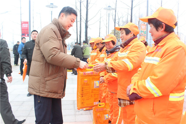 1月18日上午,園區(qū)黨工委委員、管委會副主任、規(guī)劃建設(shè)局局長許紹杰帶隊慰問了奮戰(zhàn)在一線的城市維護(hù)作業(yè)人員,向他們送上了春節(jié)的問候。